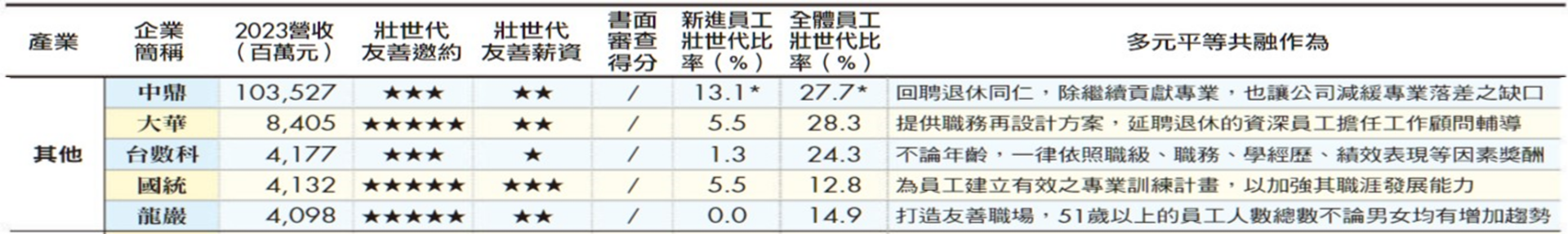 大華金屬 (GCM) 歡迎壯世代的夥伴加入我們的團隊!在這個面臨勞動力高齡化挑戰的時代,我們深知壯世代夥伴所擁有的豐富經驗和智慧是企業不可或缺的寶貴資產。令人自豪的是,大華金屬榮獲商業周刊與 104 人力銀行聯合頒發的「DEI壯世代100強企業」殊榮,這進一步證明了我們對壯世代夥伴的重視與支持。