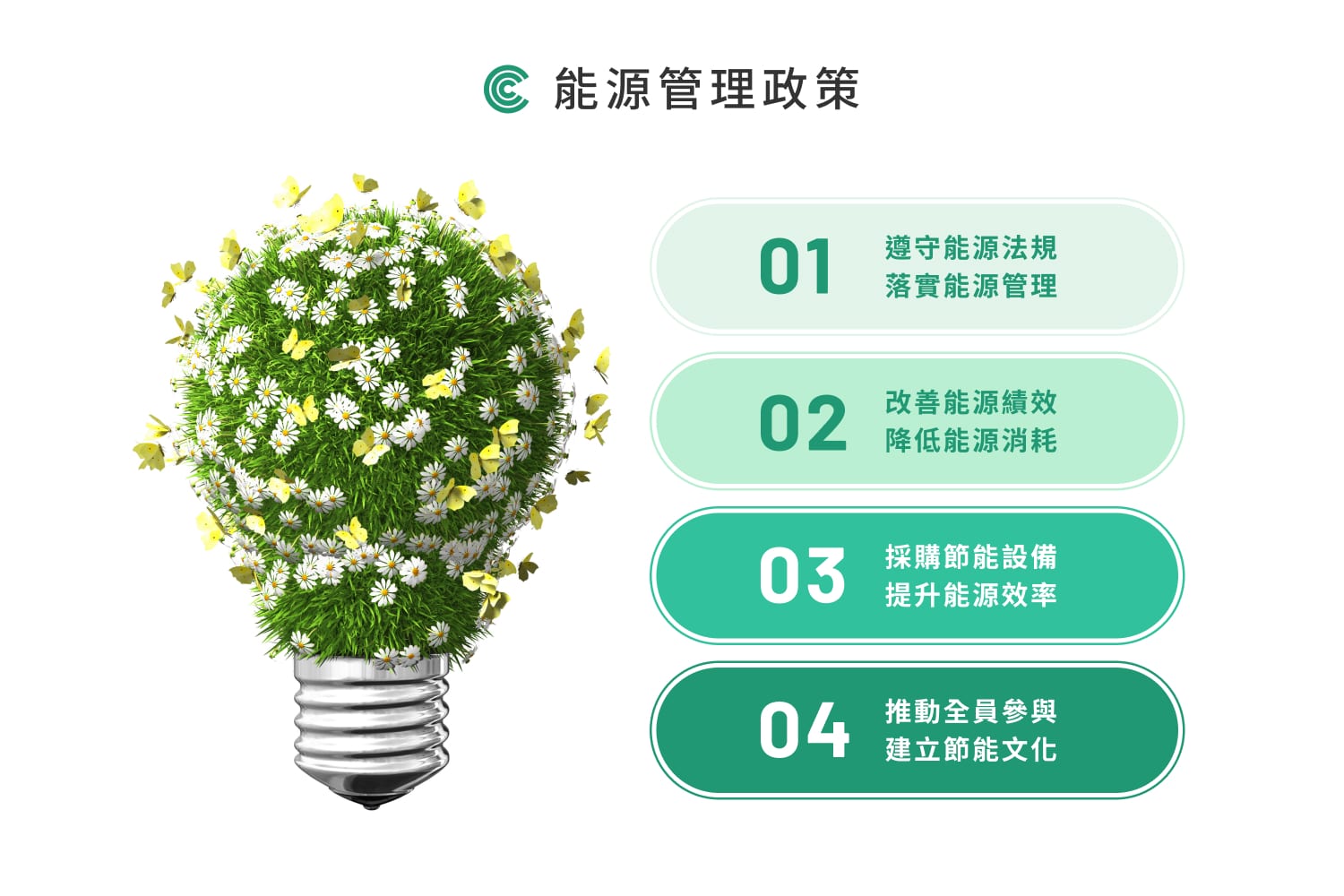 大華金屬致力於邁向低碳、環保友善的製程,立志成為穩健獲利並注重環保的卓越企業。面對永續發展與低碳時代的挑戰,大華金屬將能源管理視為首要任務之一,並將其作為未來營運的核心重點。近年來,本公司透過多元策略有效降低能源消耗並提升生產效率,例如引入先進技術開發低碳產品、在廠區增設蓄熱式燃燒爐等節能設備,以及控制辦公室和廠區的能源使用。我們將多種節能策略並行實施,以期達到全面的能源管理。