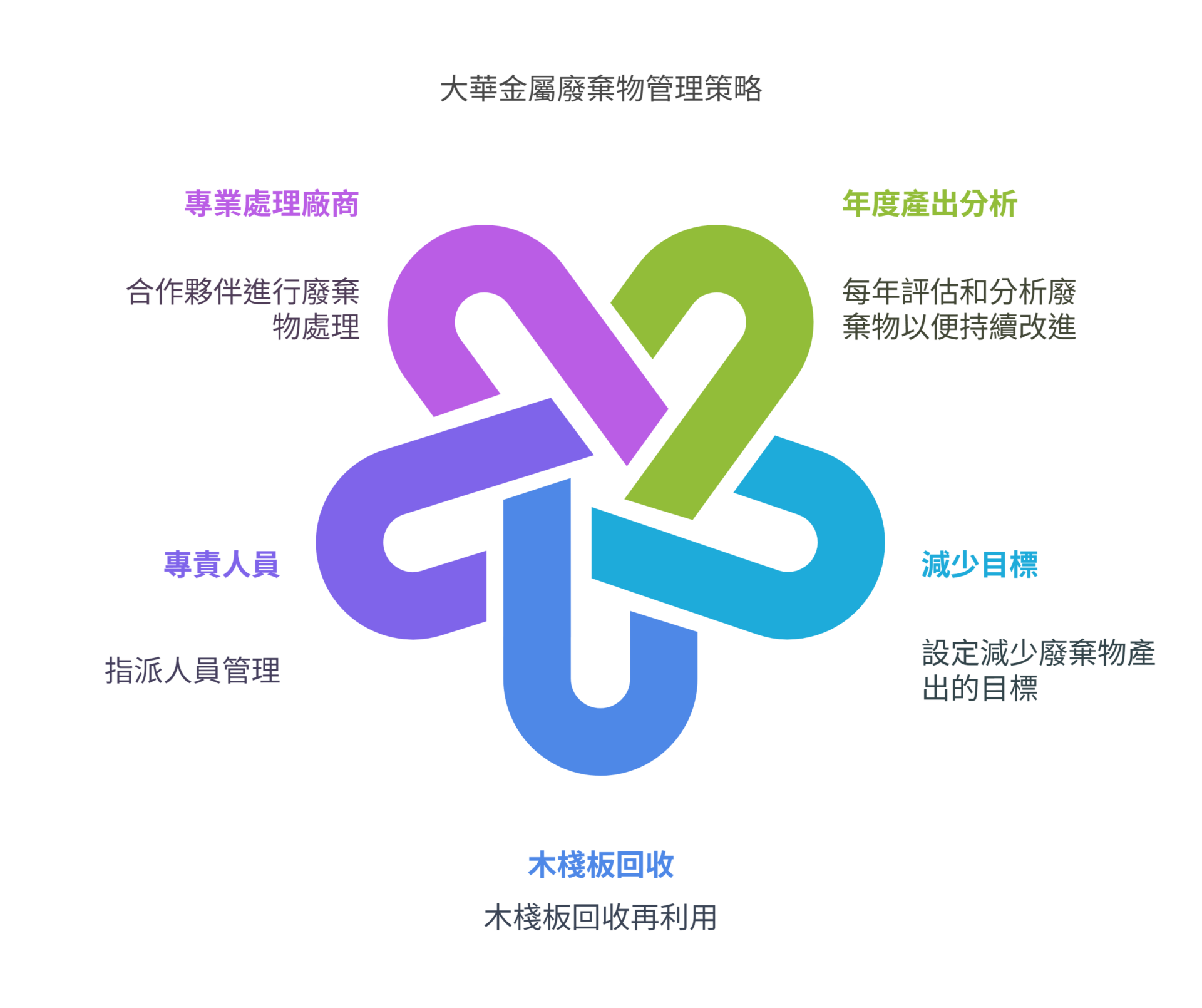 在廢棄物處理方面,大華金屬每年都會統計分析年度產出量,並制定目標逐年降低產出比例,以實現真正的環境友善生產。例如,對於廠內使用的木棧板,頭份廠每年可回收750片,富岡廠則可達100片的回收量。此外,本公司聘請了一名專責廢棄物清理的人員,負責將廢棄物進行妥善分類,並委託專業且合格的處理廠商根據不同類別的廢棄物進行清運。