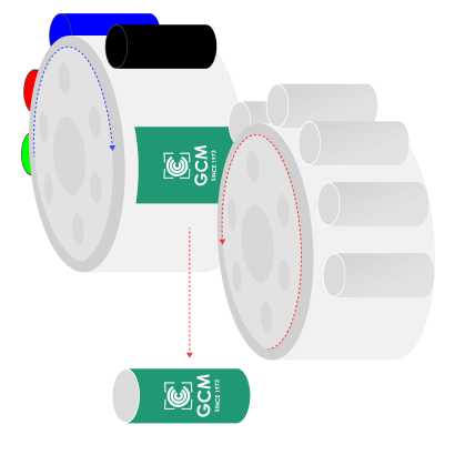 三片式鐵罐主要使用馬口鐵作為原料,馬口鐵是一種以低碳鋼板為基材,經過熱浸鍍上一層錫(Sn)而製成的複合材料。根據產品設計,本公司協助客戶印製高品質的各式圖樣,用於印刷罐身、罐底和罐蓋上的圖案、文字和品牌標識。印刷完成後需要接續烘乾油墨,使其牢固附著在罐身表面,防止在後續加工過程中脫落或模糊。