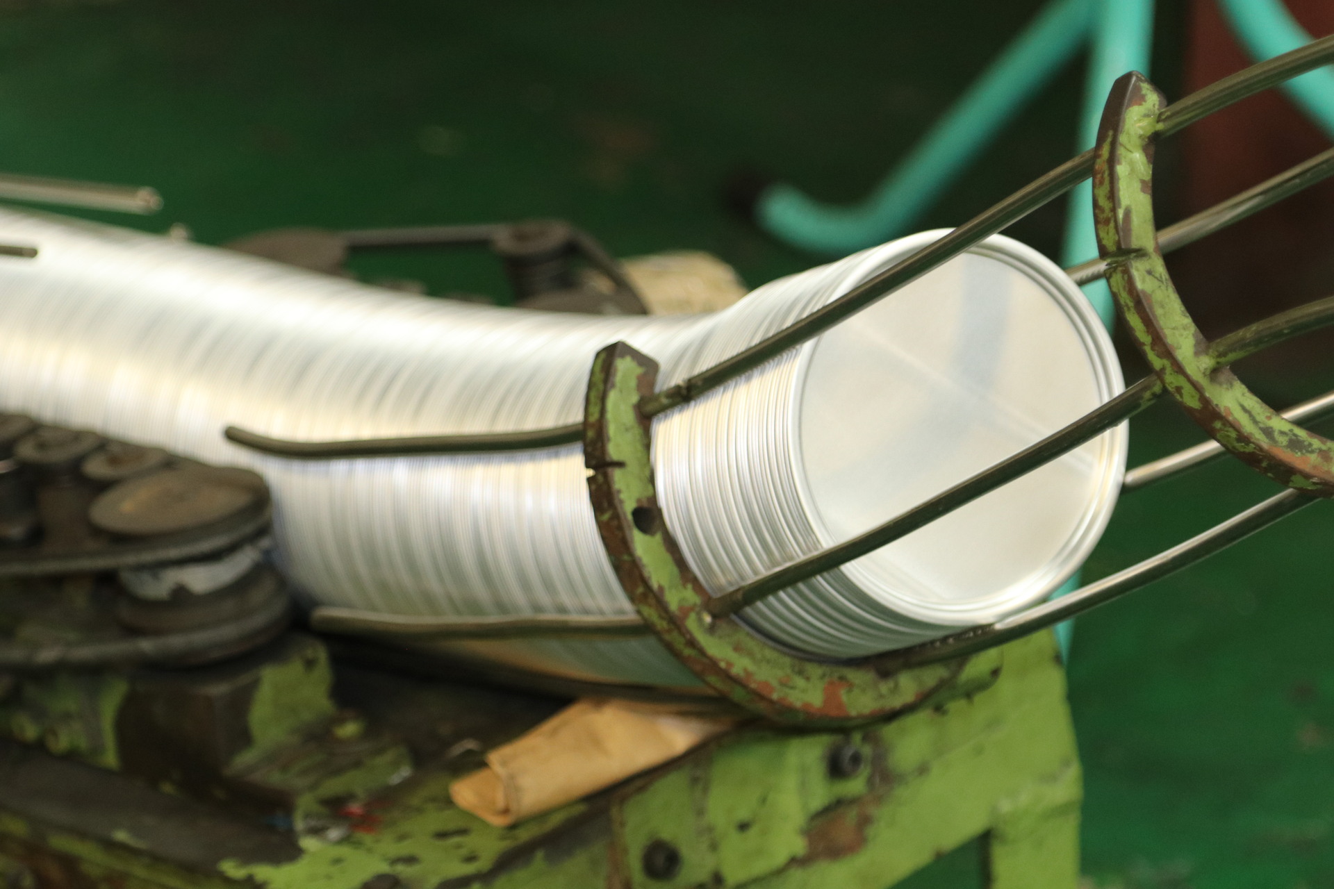 製作鋁罐的每顆鋁捲重量達到6~9噸,透過移載設備,進入沖壓機後,便會利用模具沖壓成圓形坯料,再通過拉伸模具進行拉伸,形成初步的杯狀結構(俗稱「沖杯」)。