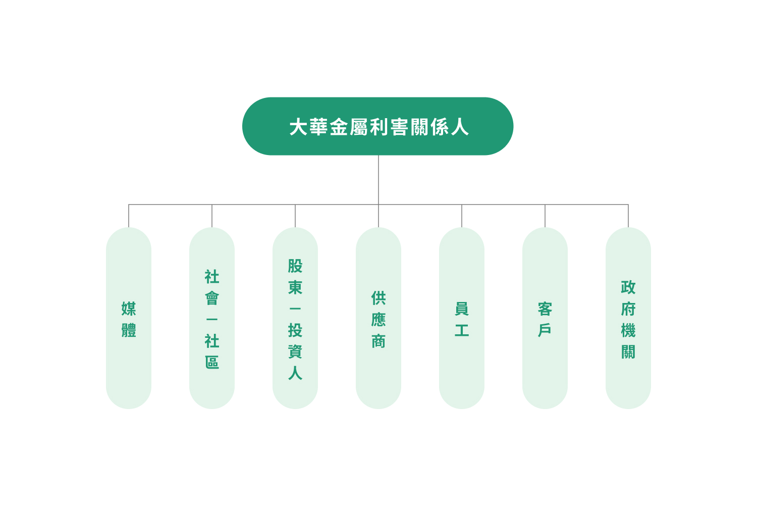 經綜合評估,確認大華金屬的主要利害關係人為:客戶、員工、供應商、政府機關、股東/投資人、社會/社區及媒體。透過本次議合,我們已能更精確地掌握各方對公司的期望與需求,並據此制定更具針對性的企業社會責任策略,以強化與各利害關係人的互動,促進公司永續發展。